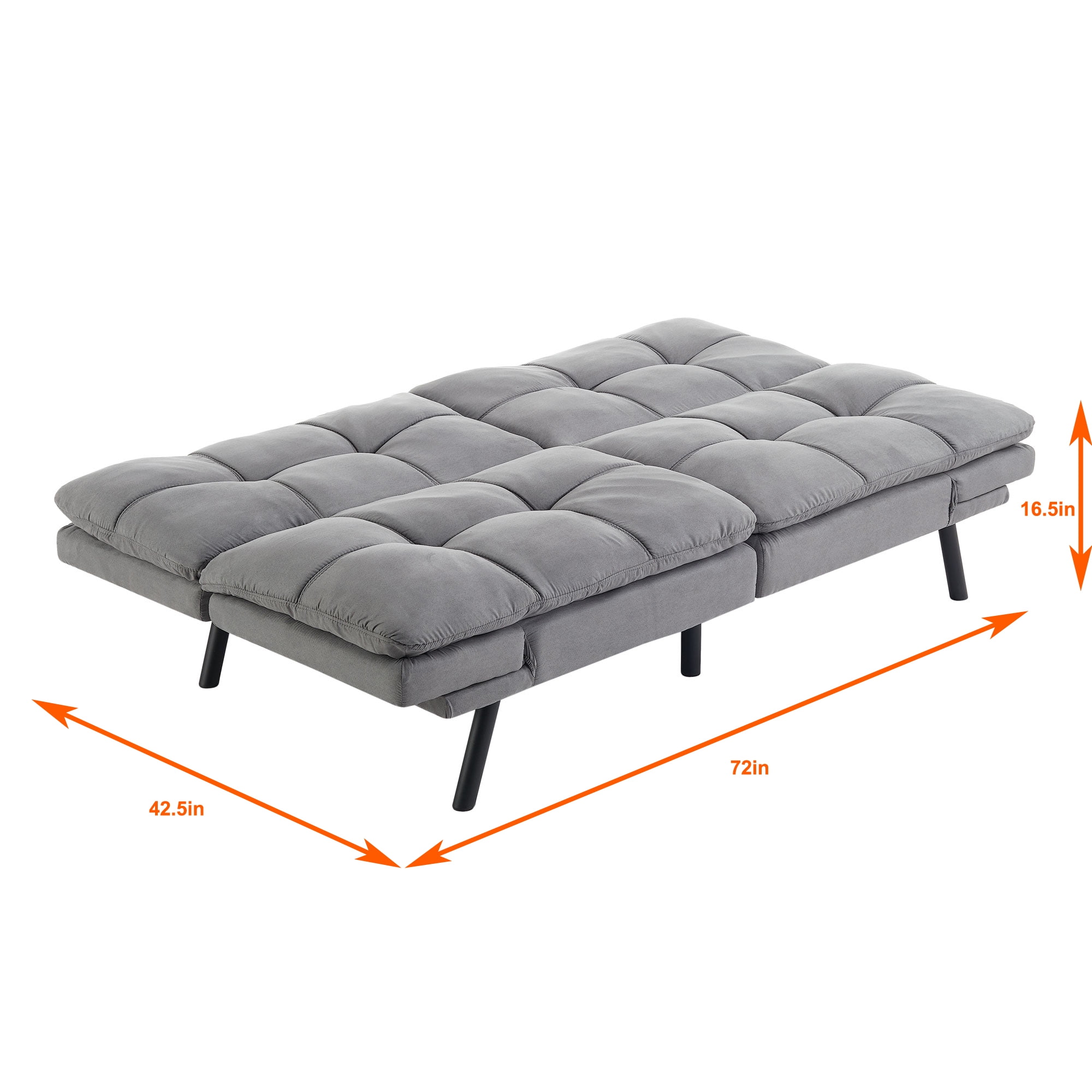 Memory Foam Futon Gray Faux Suede Fabric 72 Inches Zars Buy